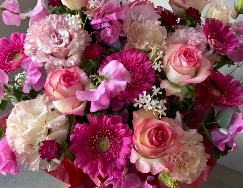 色選択できる花材おまかせブーケです。